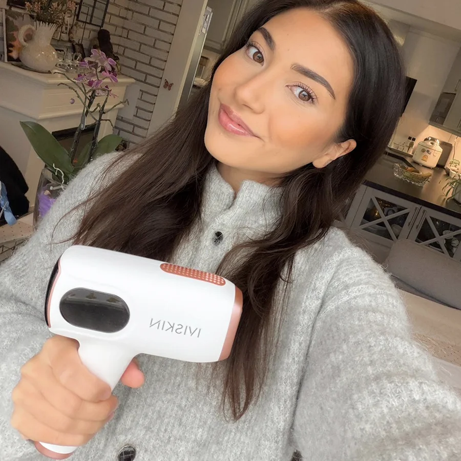 Iviskin er helt fantastisk! Emballasjen er nydelig, og apparatet er så lite og elegant at det faktisk pynter opp i hylla. Det er utrolig enkelt å bruke, og resultatene kom raskt.